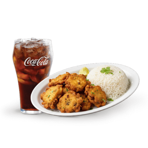 Pakora Fish with Rice and Choice of Drink